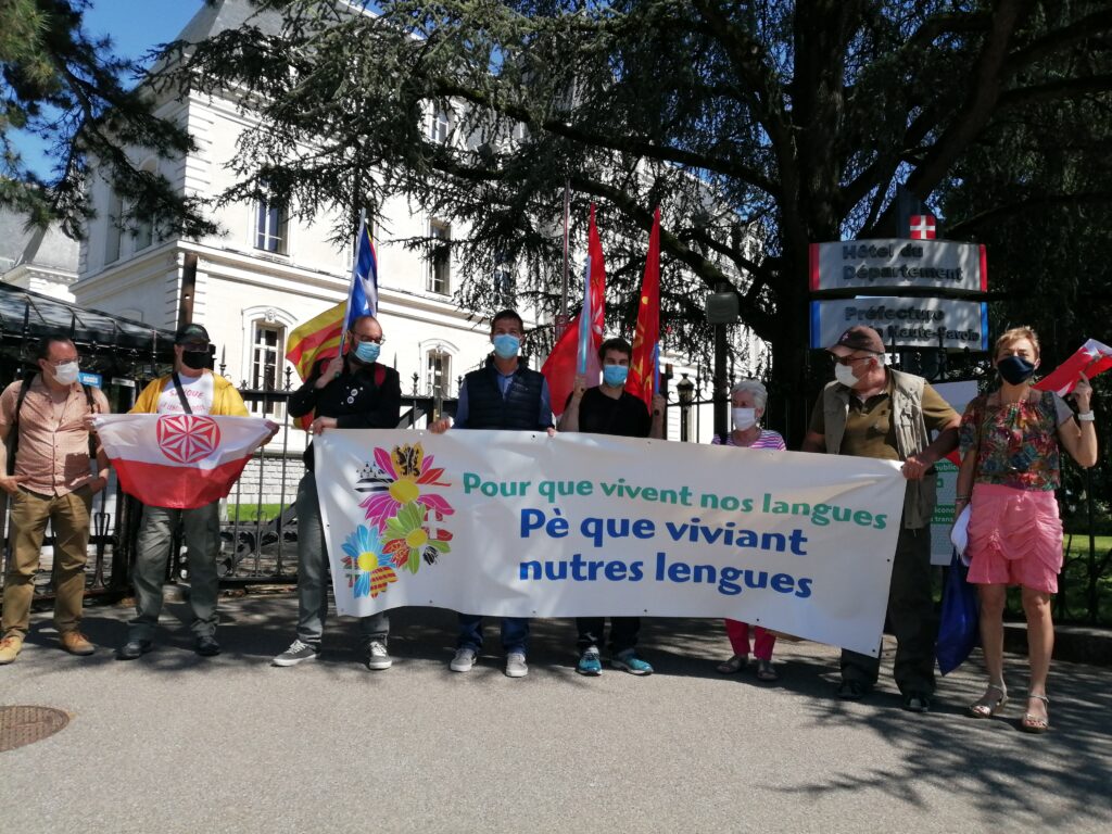 Dans la région savoyarde également, le samedi 29 mai, les représentants des groupes de défense de la langue savoyarde se sont regroupés devant la préfecture à Annecy pour apporter une lettre cosignée par les cinq groupes principaux, à savoir l’Institut de la Langue Savoyarde (ILS), l’Association des Enseignants de Savoyard (AES), Savouè Ecula 2 (Association de parents d’élèves pour l’enseignement bilingue), l’Alliance Culturelle Arpitane (ACA) et Lou Rbiolon (Fédération de groupes de langue savoyarde). Ils ont tous exprimé leur mécontentement à l’égard de la situation linguistique en France.